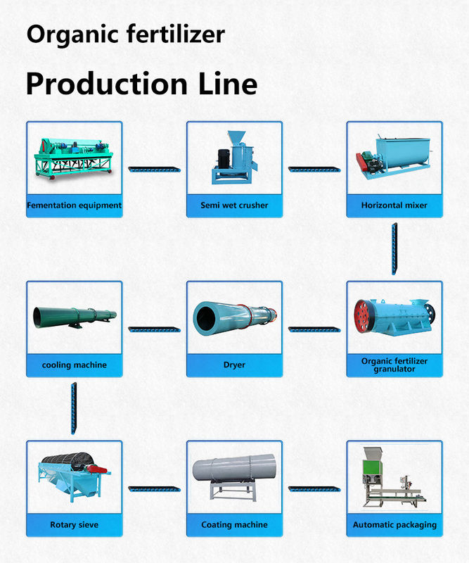 The Organic Fertilizer Production Line is designed to granulate organic wet raw materials. The product has a capacity of 1-20T/h and can be used with a variety of raw materials such as compost manure, farm waste, city garbage, etc. The production process of the product includes crushing, mixing, granulating, screening, and packaging.